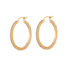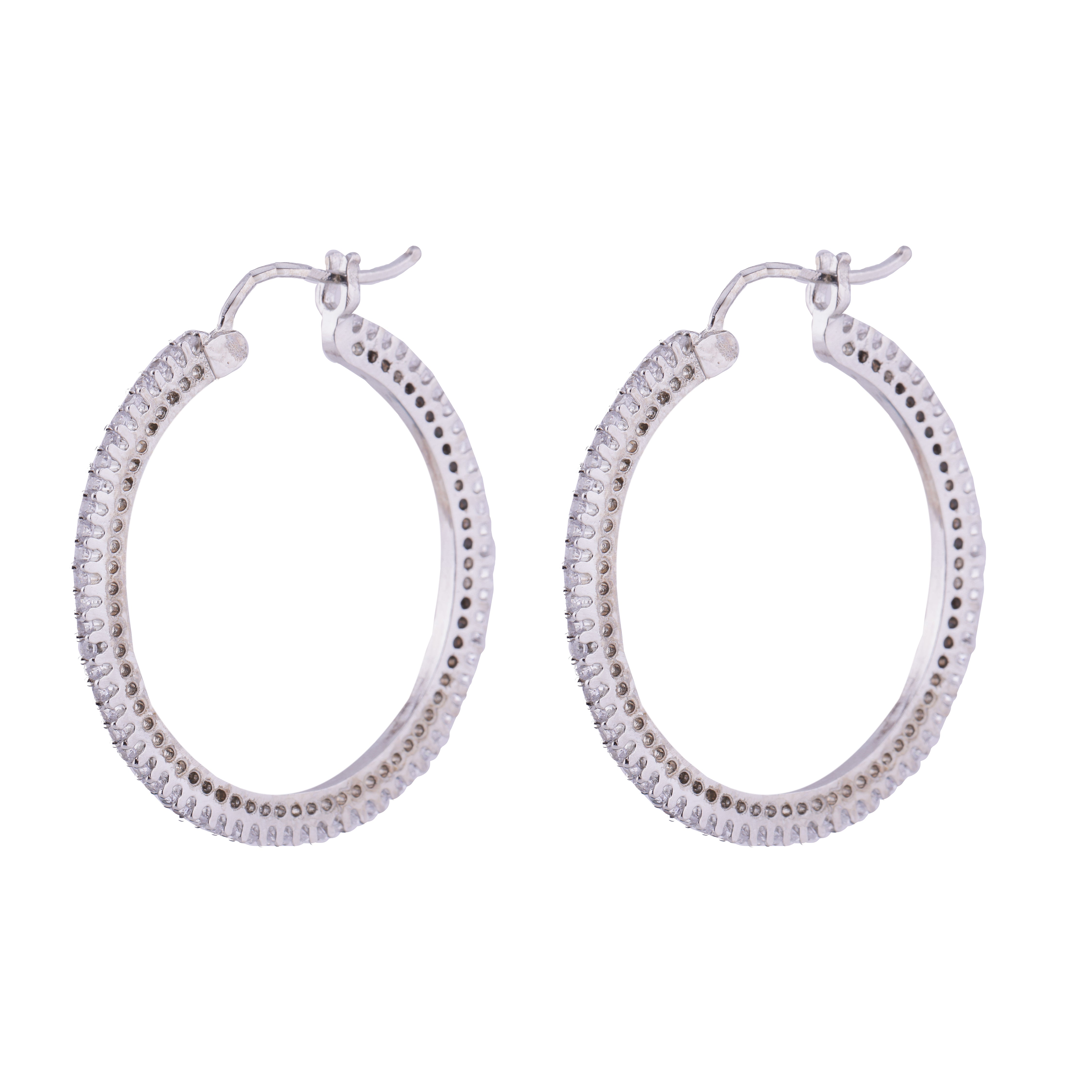 Crafted with exquisite attention to detail, these hoops feature a sleek design adorned with sparkling diamonds. The diamonds are carefully set along the front of the hoops, creating a breathtaking display of brilliance and sparkle.
