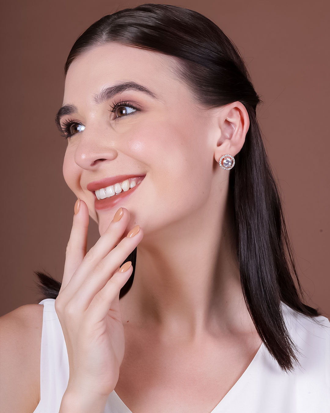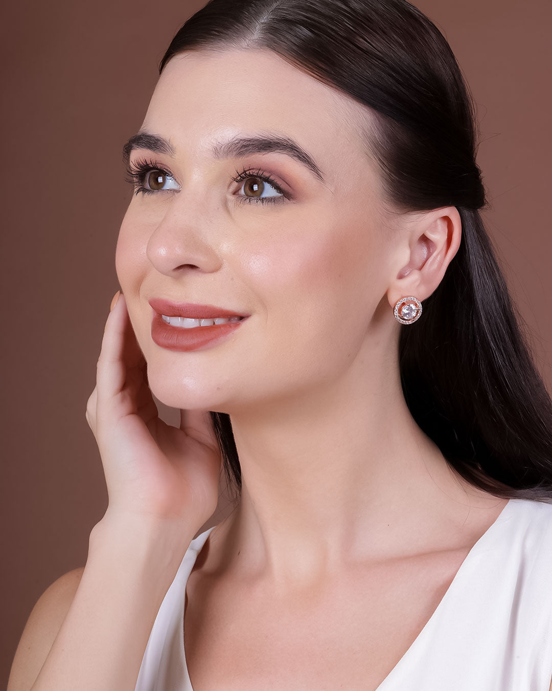 Crafted with meticulous care, these earrings feature a single solitaire stone that radiates brilliance and elegance. The surrounding halo of smaller stones enhances the overall sparkle and adds a touch of glamour to the design.