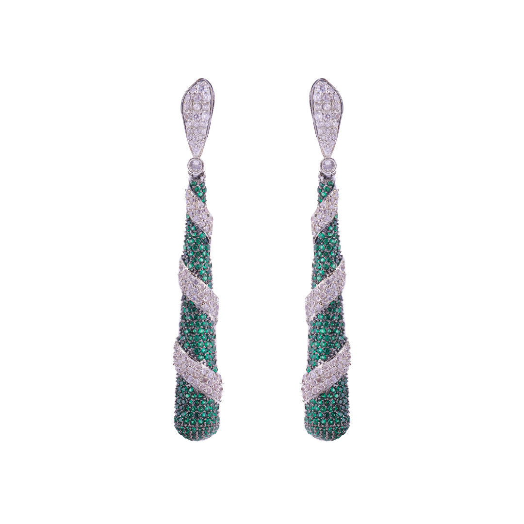 The long and sleek silhouette of these earrings adds a touch of elegance and sophistication to any ensemble. The stones, meticulously set along the length of the earrings, create a mesmerising display of brilliance and glamour.