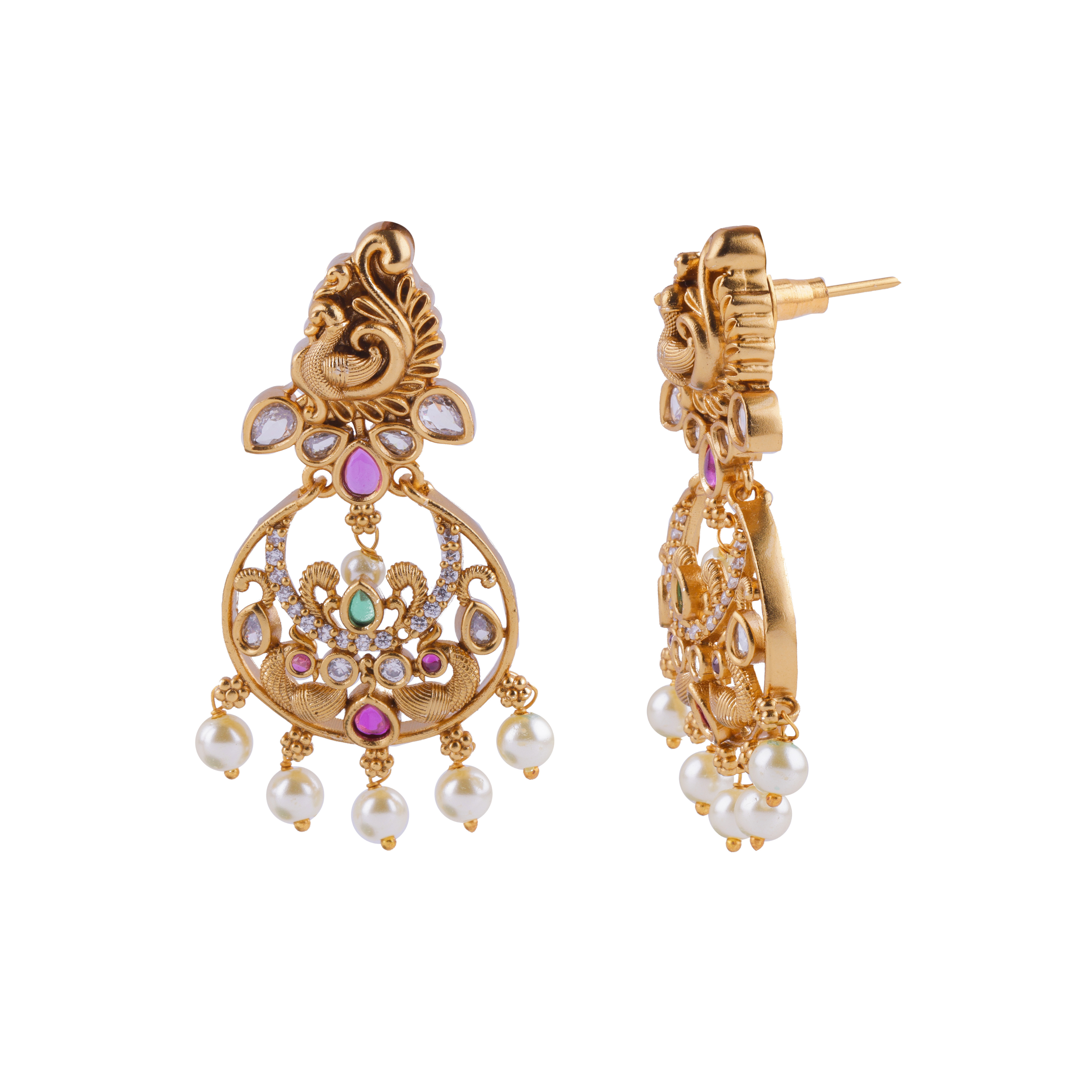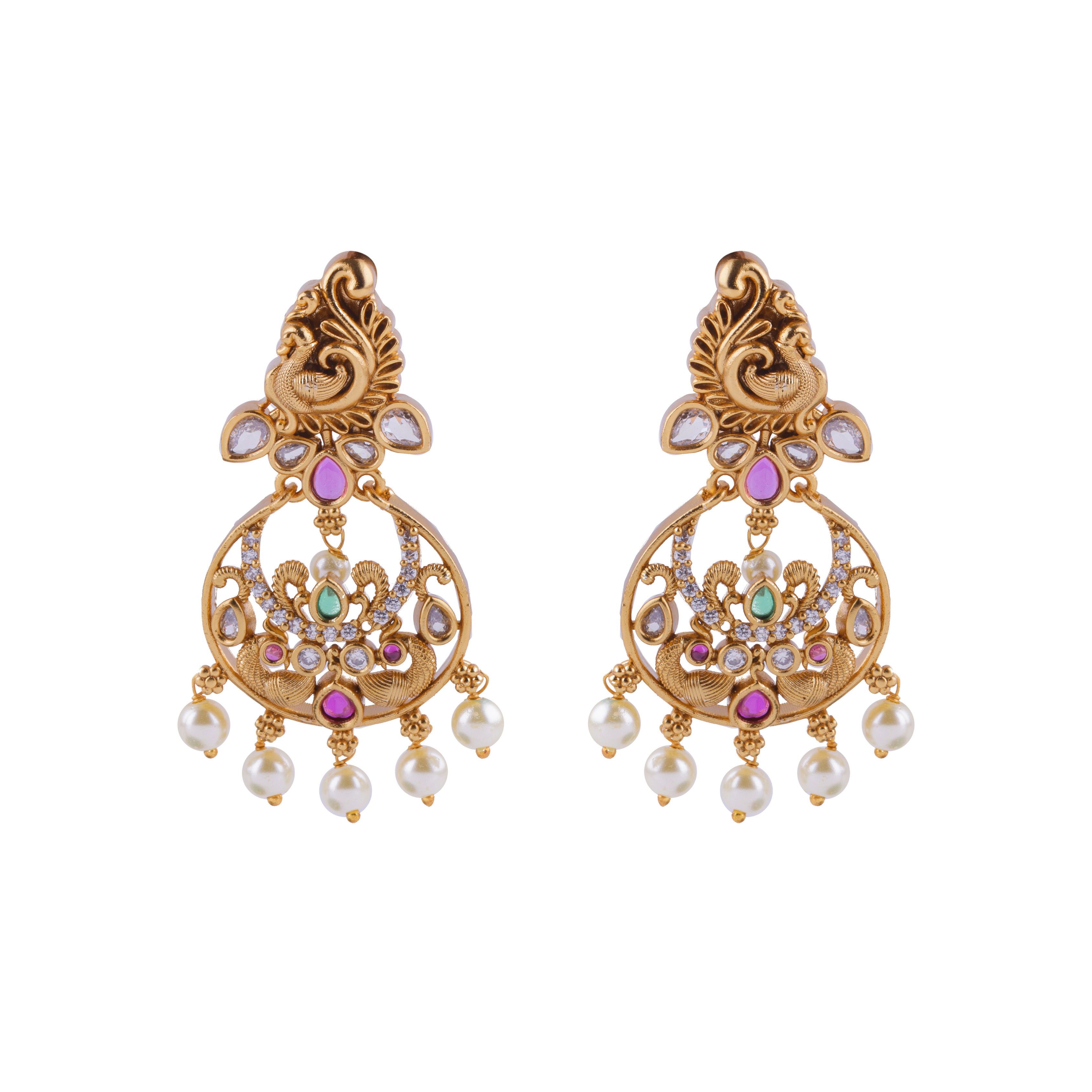 Traditional Antique Gold Pearl Drop Chandbali Earrings