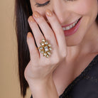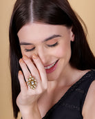 Introducing our Traditional Designer Kundan Ring, a masterpiece that celebrates the timeless beauty of Kundan craftsmanship. This exquisite ring captures the essence of traditional Indian jewellery, bringing a touch of heritage and elegance to your ensemble.