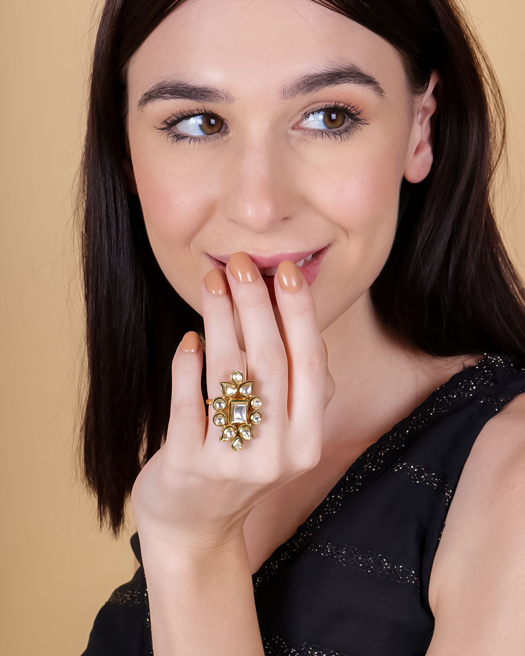 Whether you're attending a wedding, a festive celebration, or simply want to add a touch of traditional charm to your everyday look, this Traditional Designer Kundan Ring is the perfect choice. Its timeless appeal and rich cultural heritage make it a cherished heirloom that can be passed down through generations.