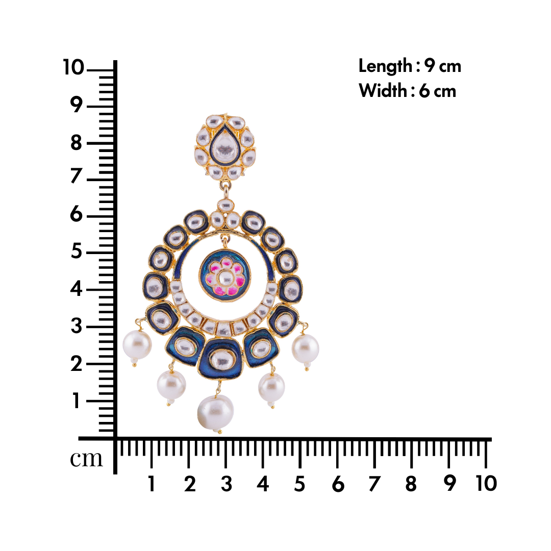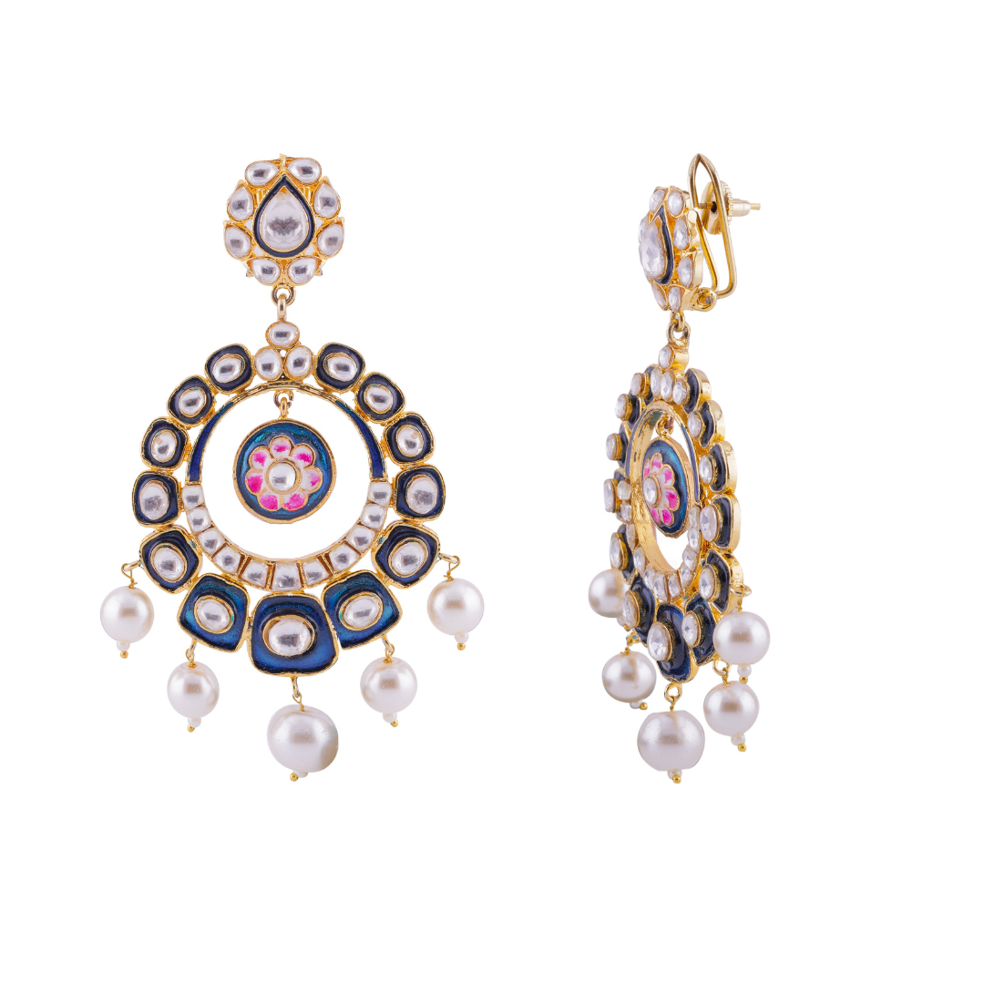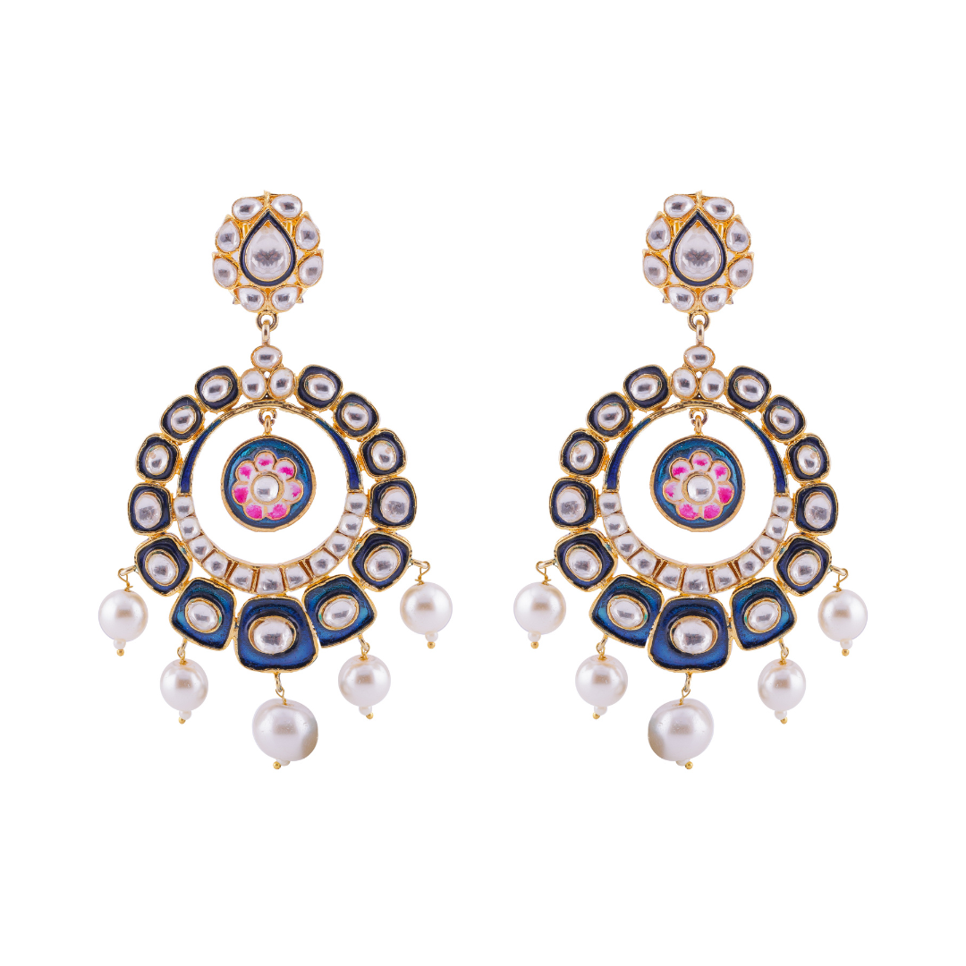 Traditional Flower Meenakari Chandbali Earrings