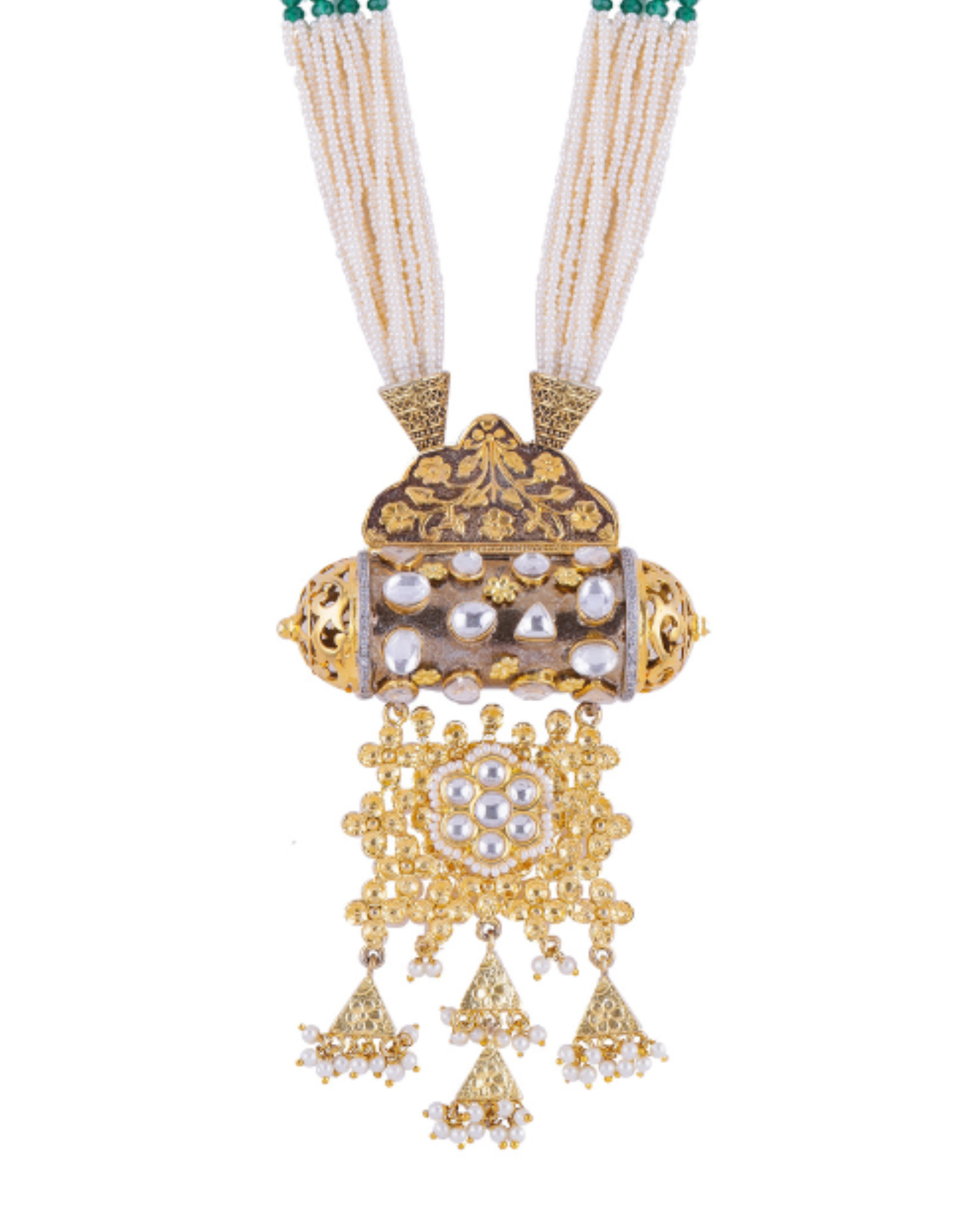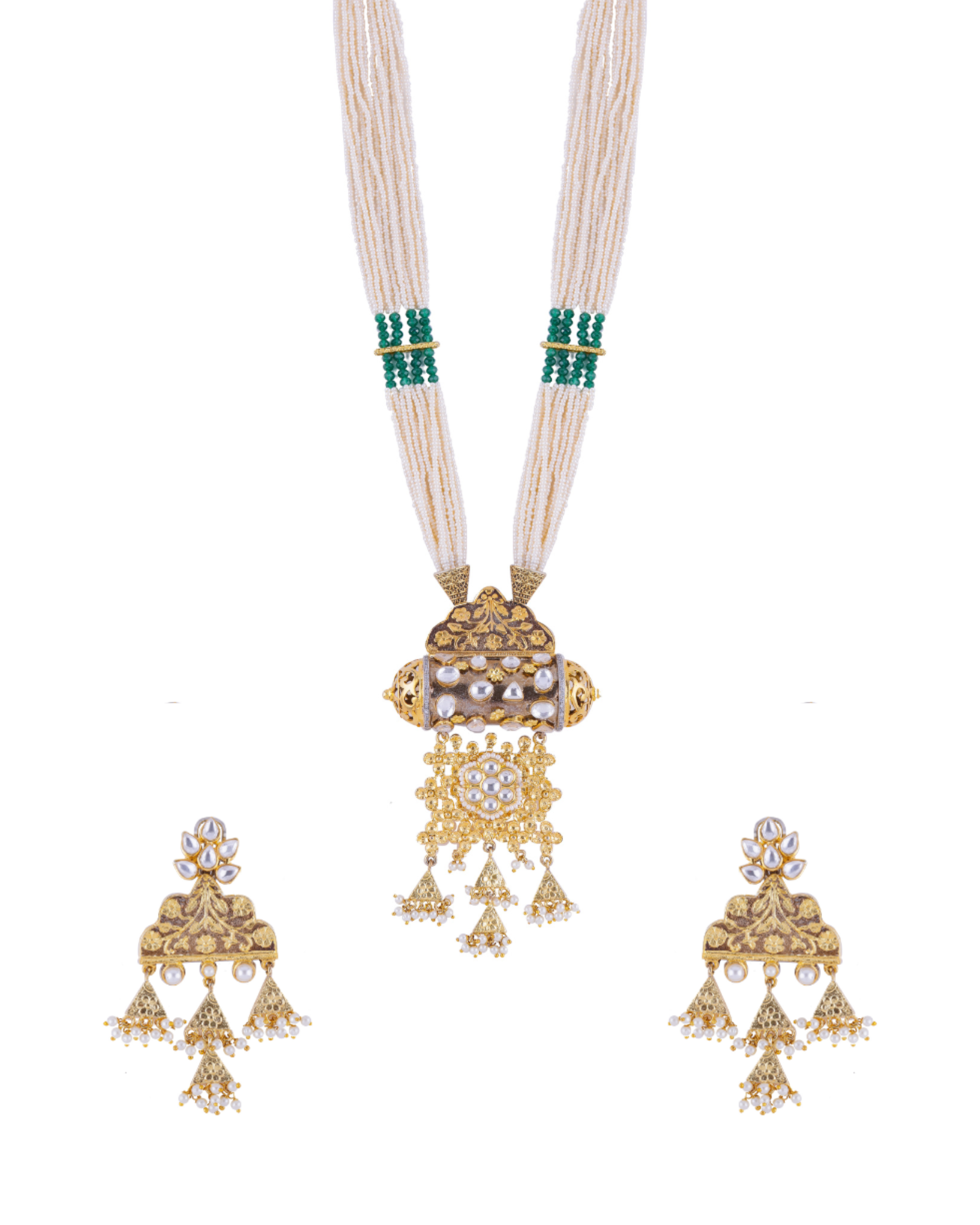 Traditional Gold Pendant Pearl Beads String Necklace Set