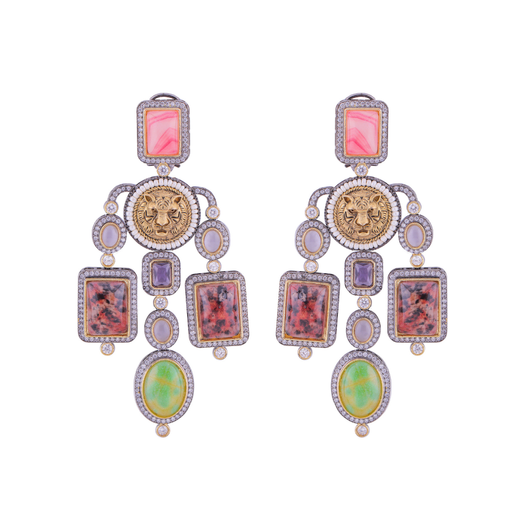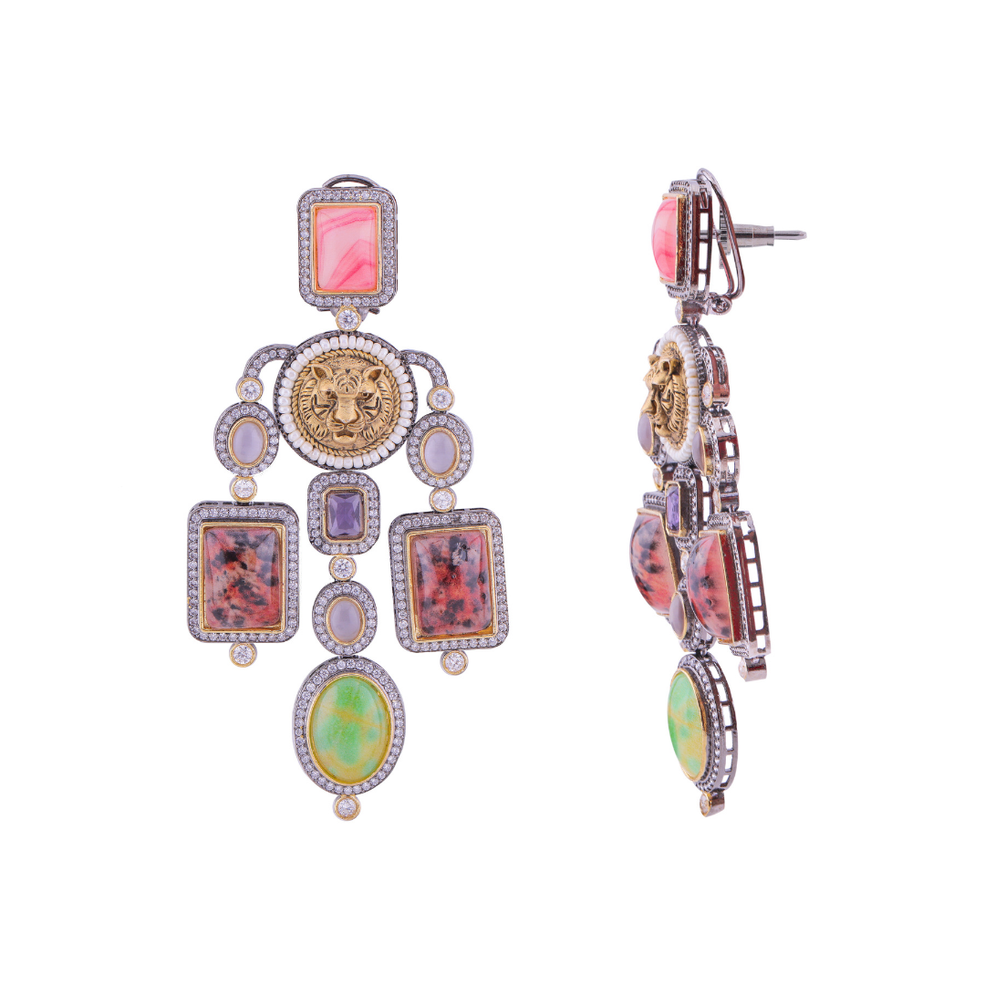 Traditional Multicoloured Stones Long Earrings
