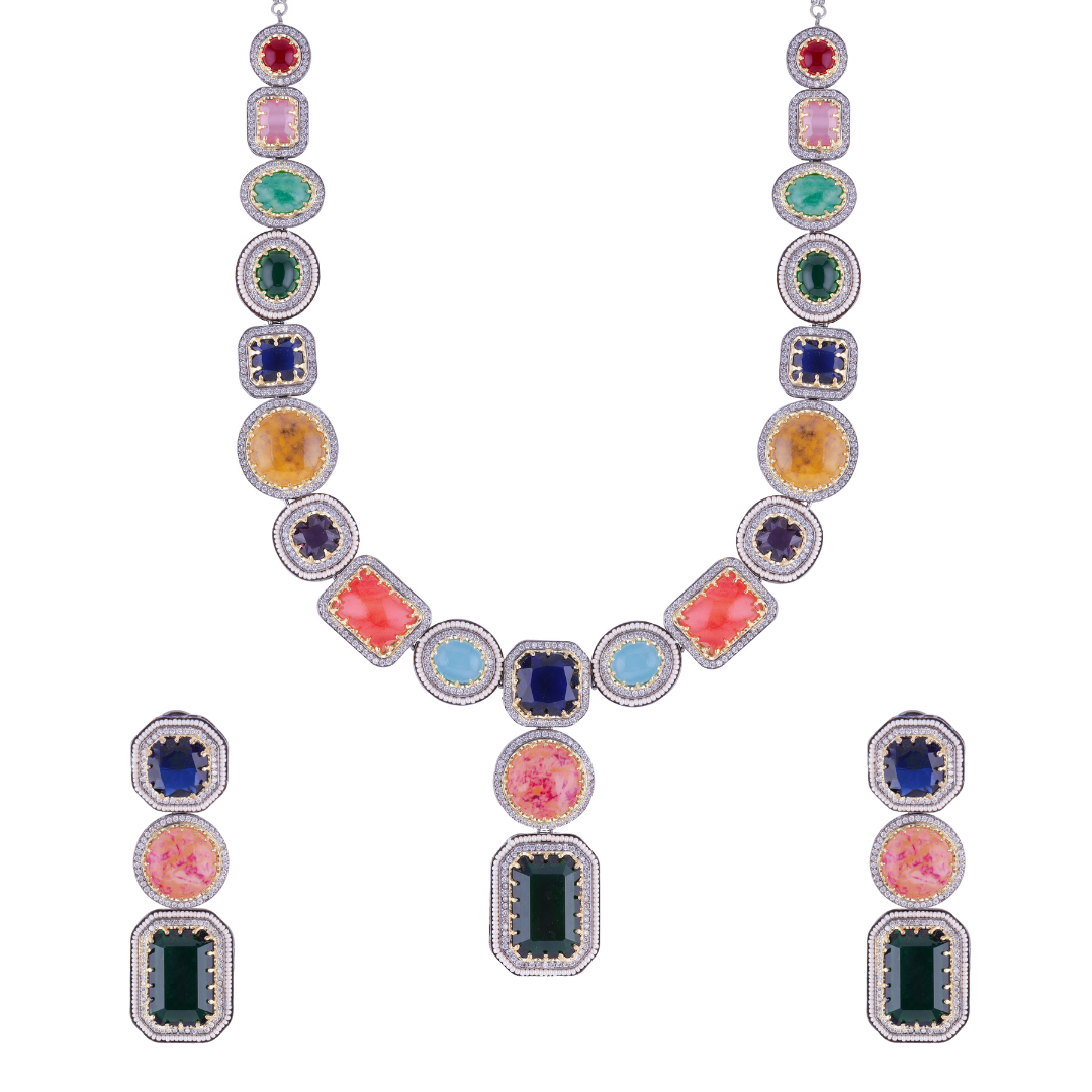 A Traditional Multitone Heritage Necklace Set is a stunning piece of jewelry that combines age-old craftsmanship with vibrant, multi-colored stones to create a luxurious and cultural statement.