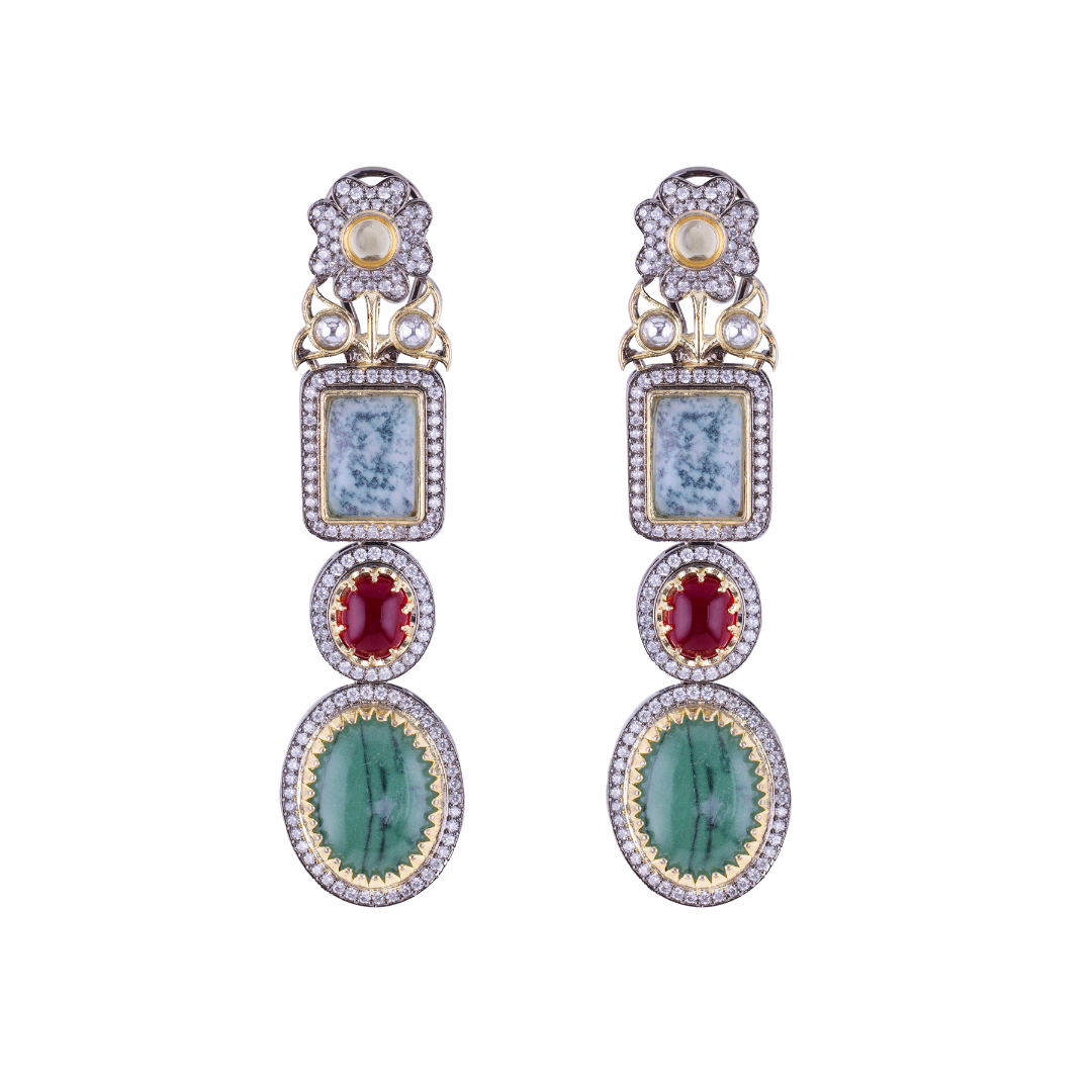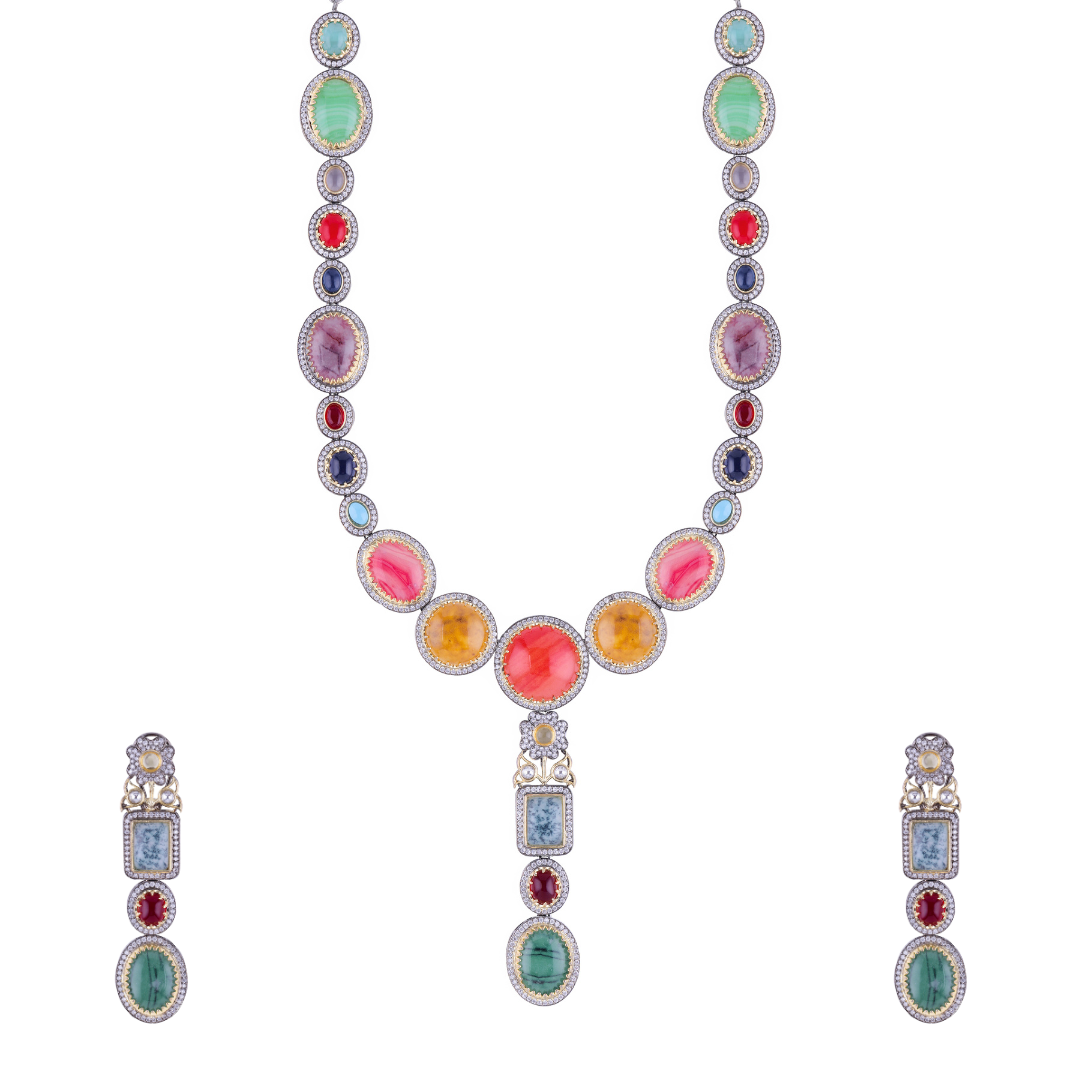 Traditional Multistone Long Necklace Set