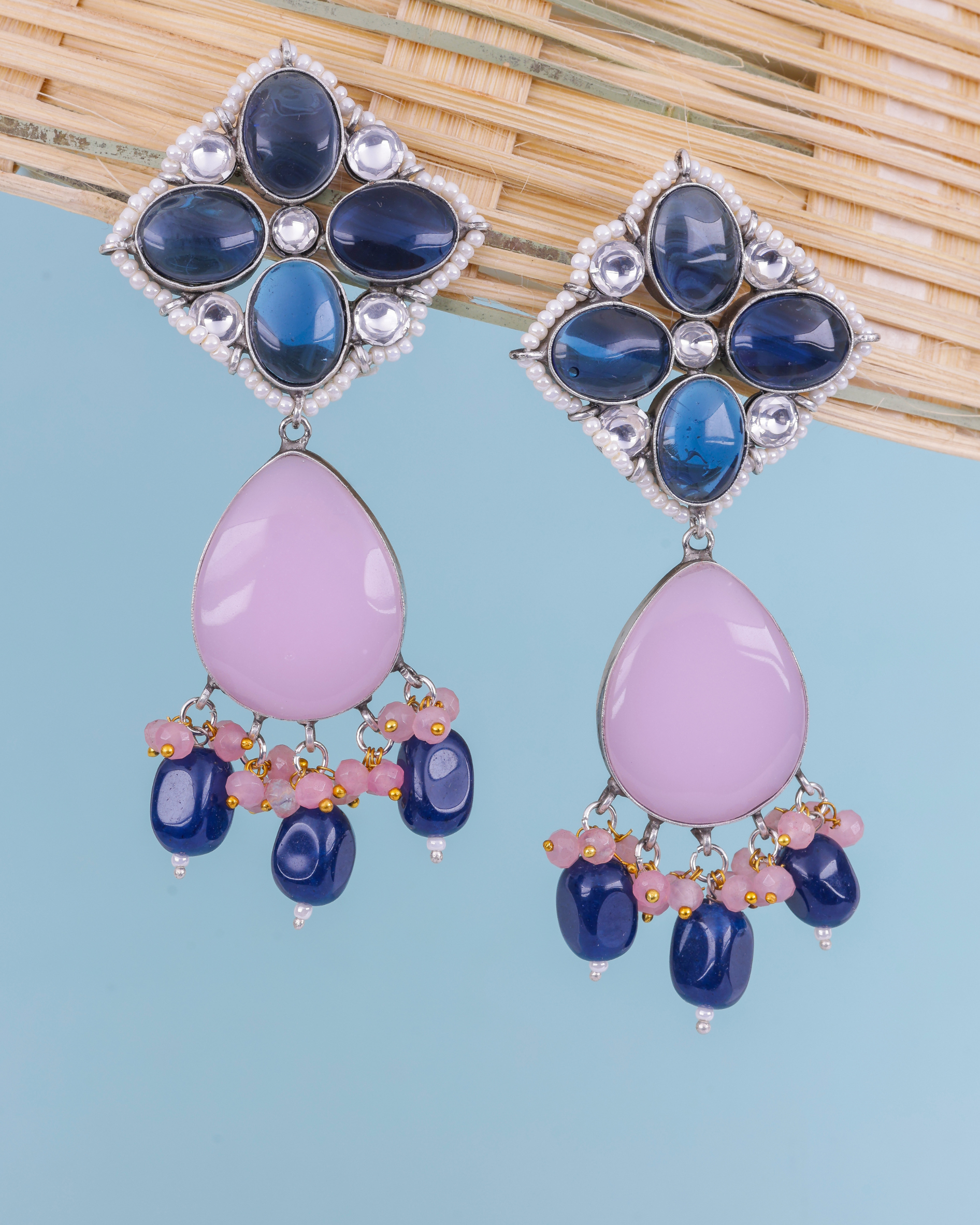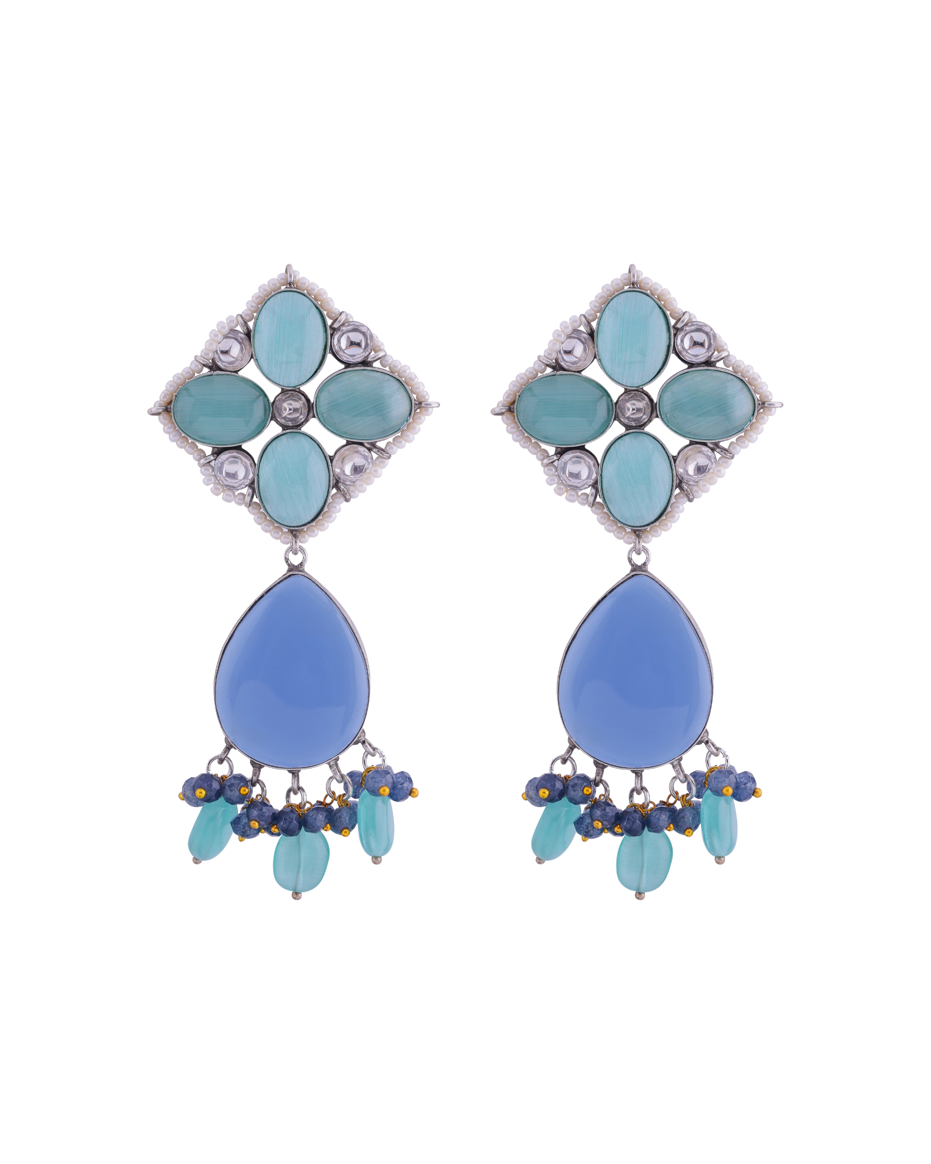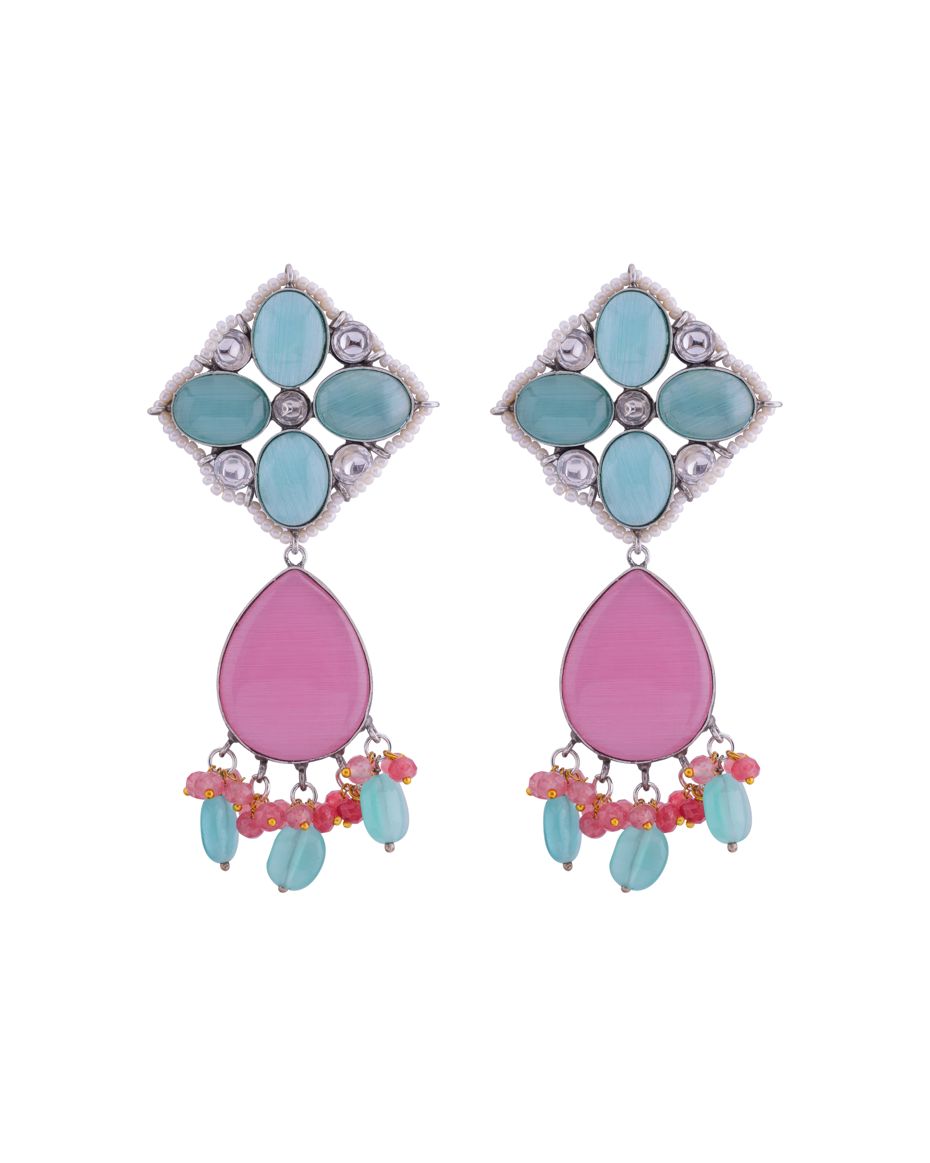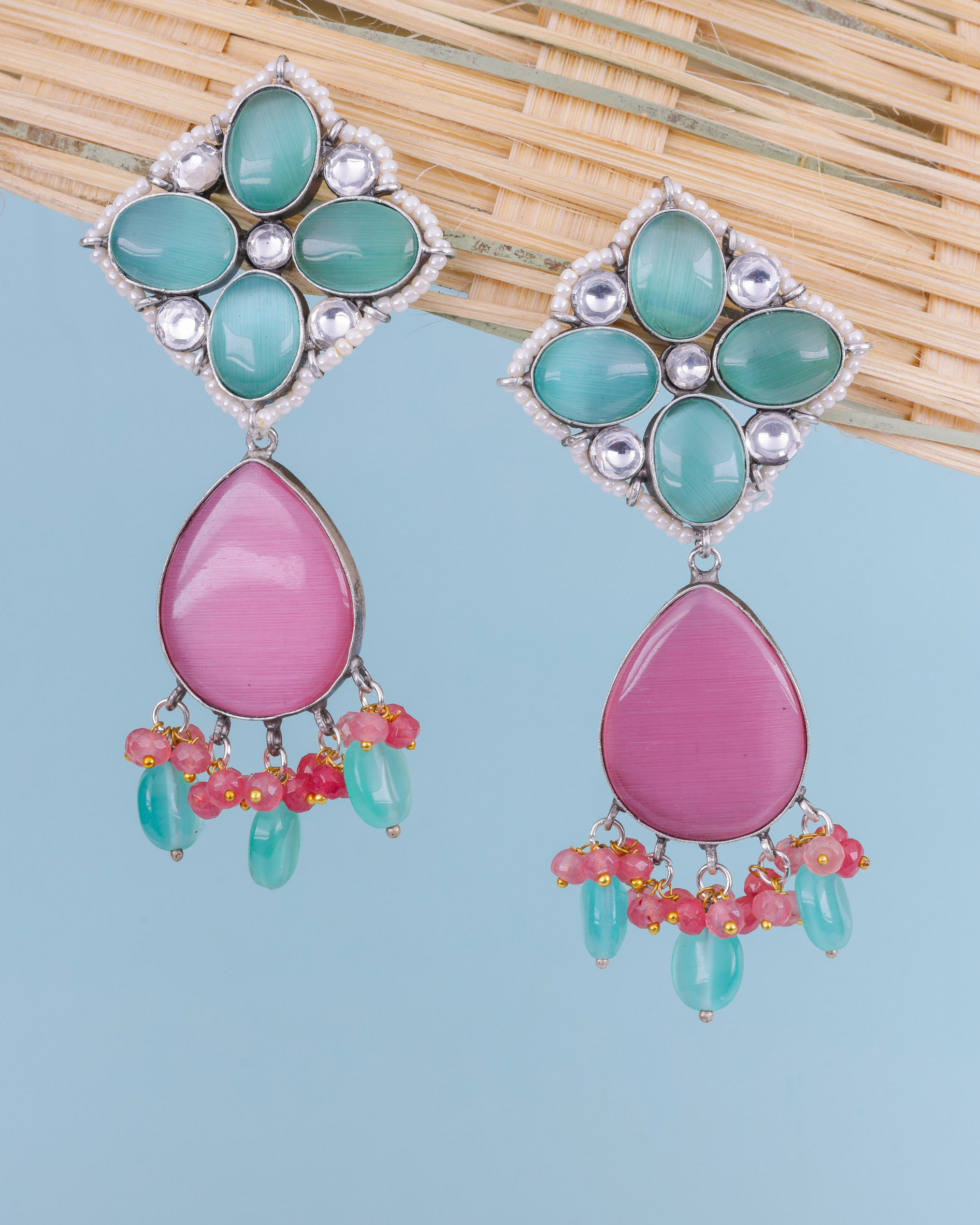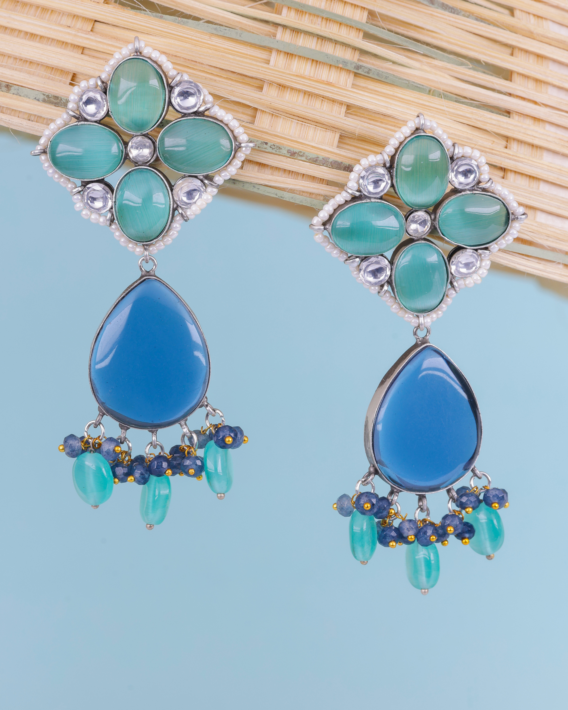 Traditional Oxidised Mulitcolour Stone Earrings