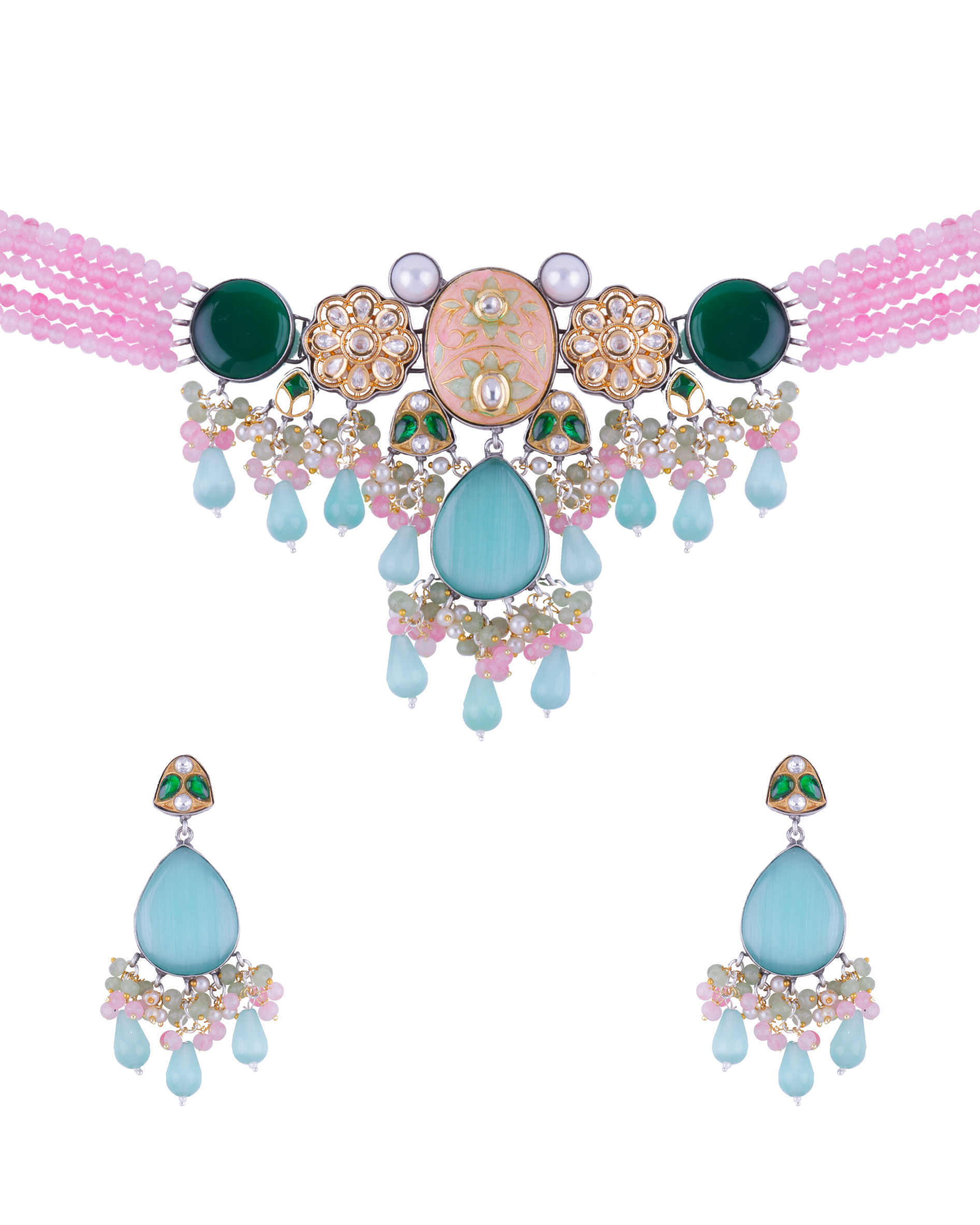 Traditional Pastel Beads Choker Necklace Set