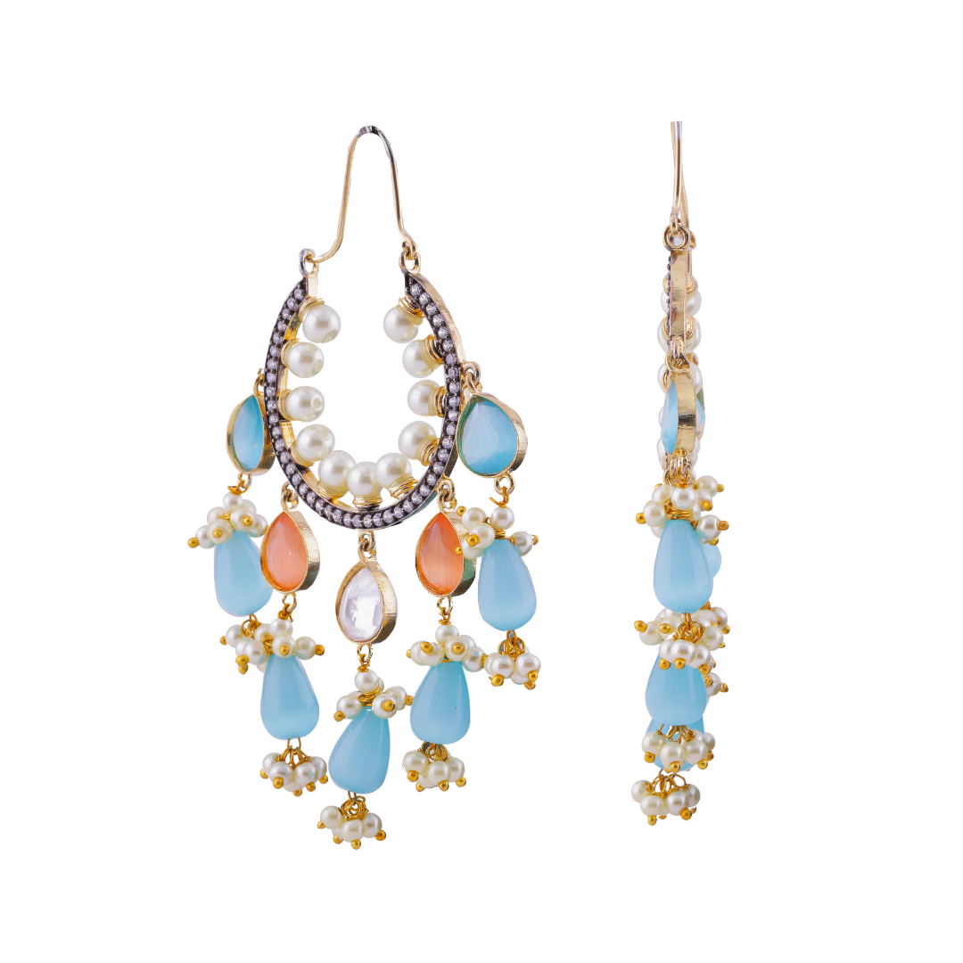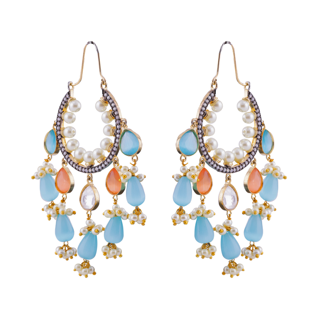 Traditional Stone & Pearl Chandbali Earrings