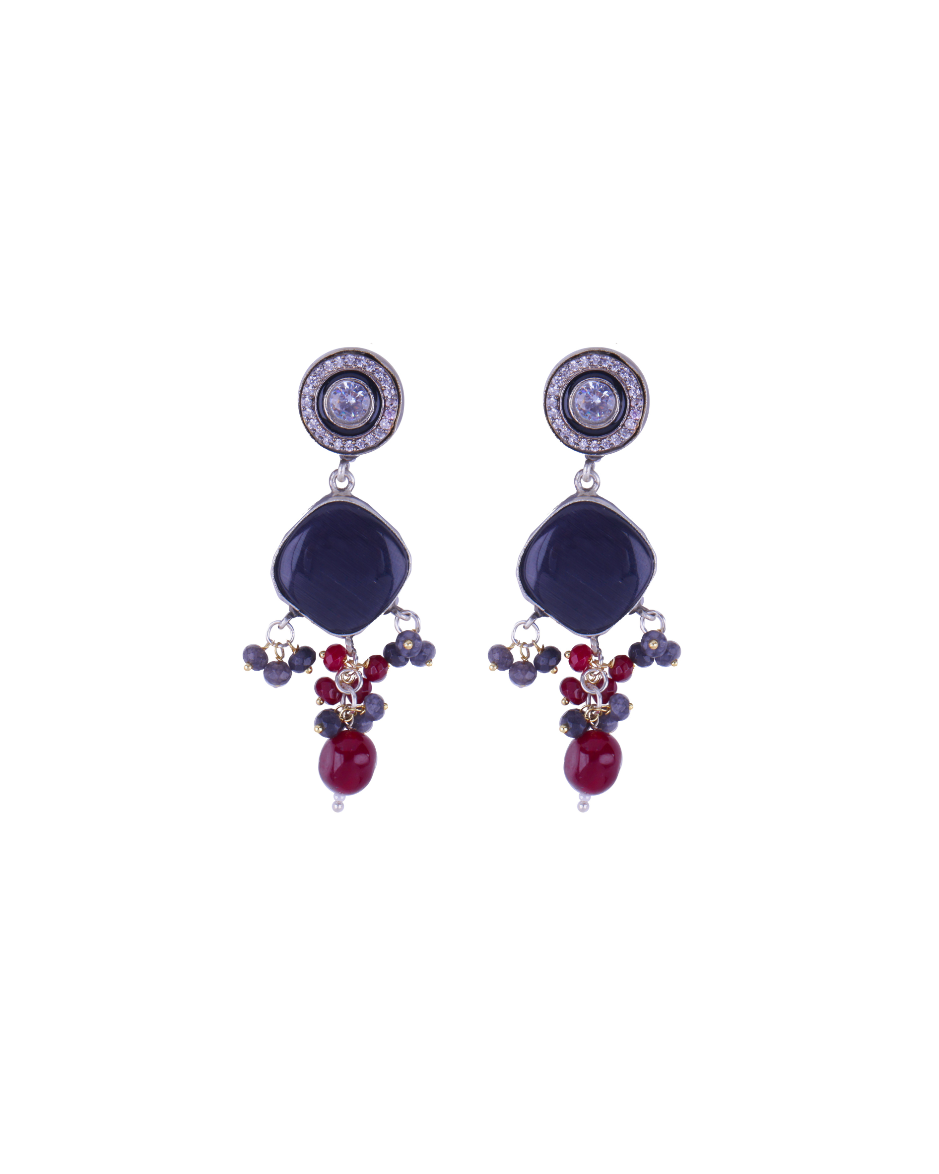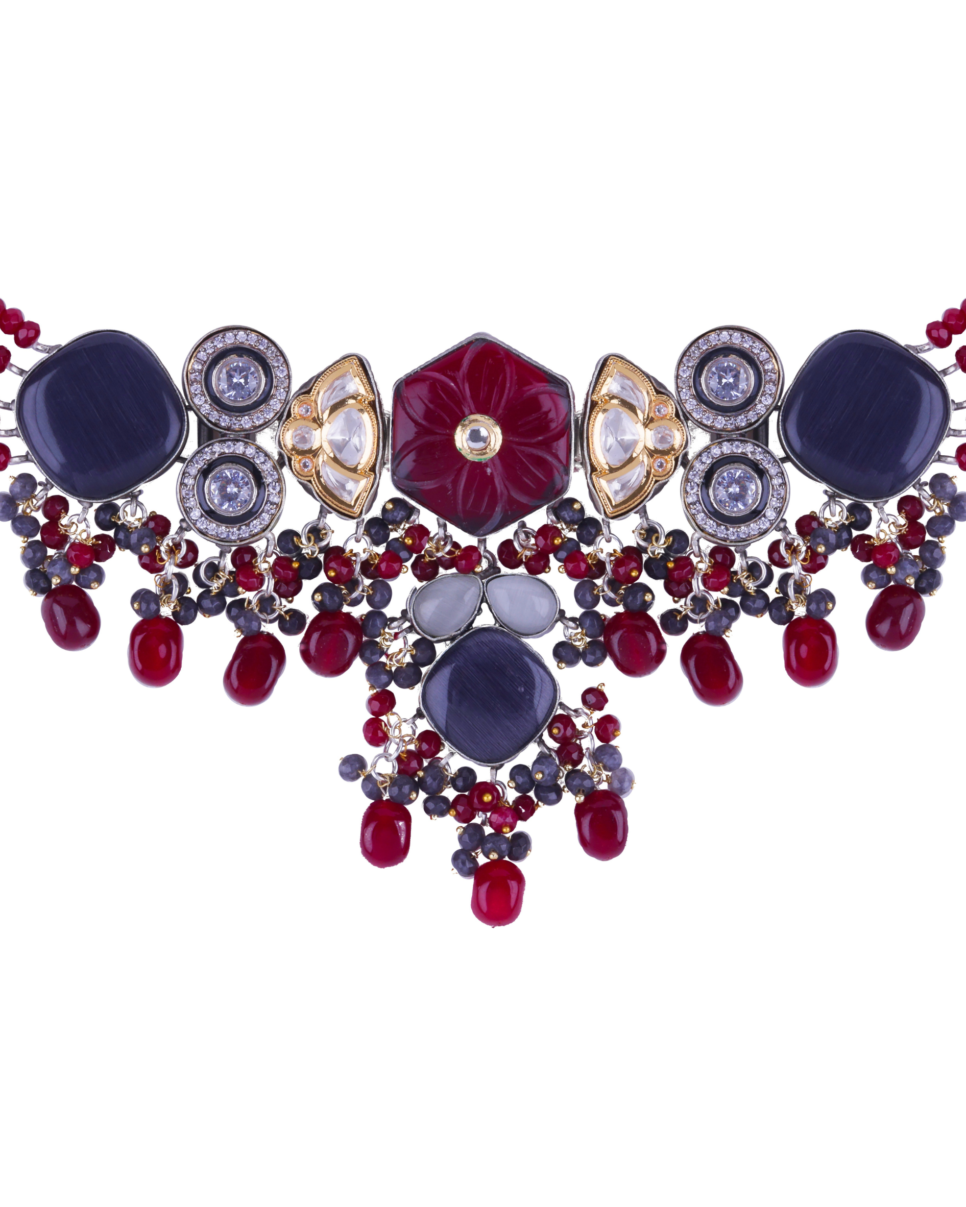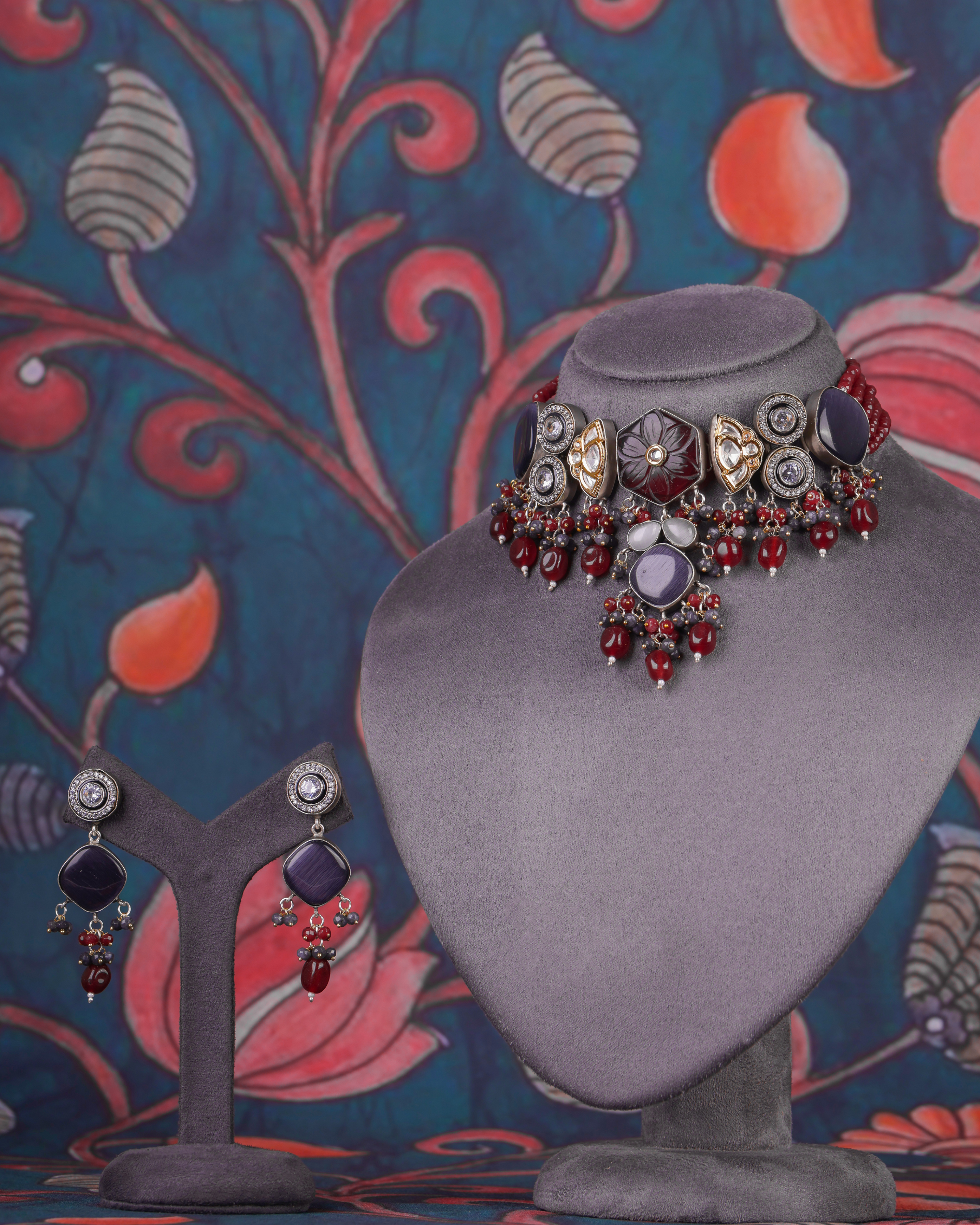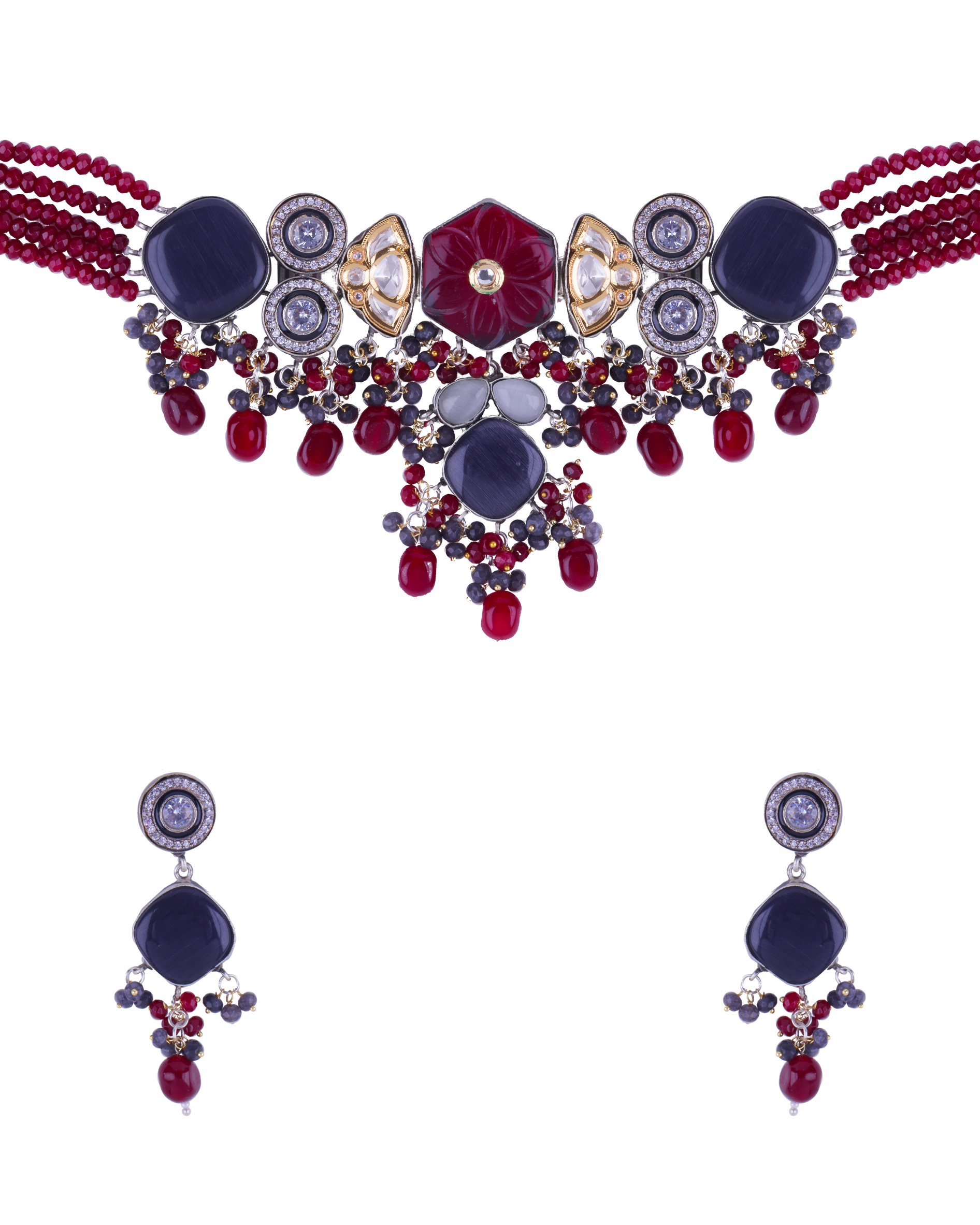Traditonal Maroon & Black Stone Choker Necklace Set