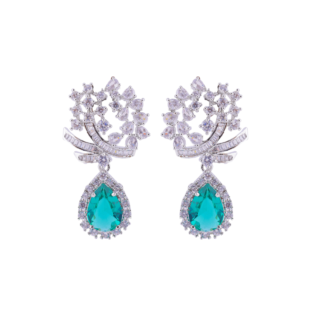 Zirconia Aqua Green Stone Drop Earrings