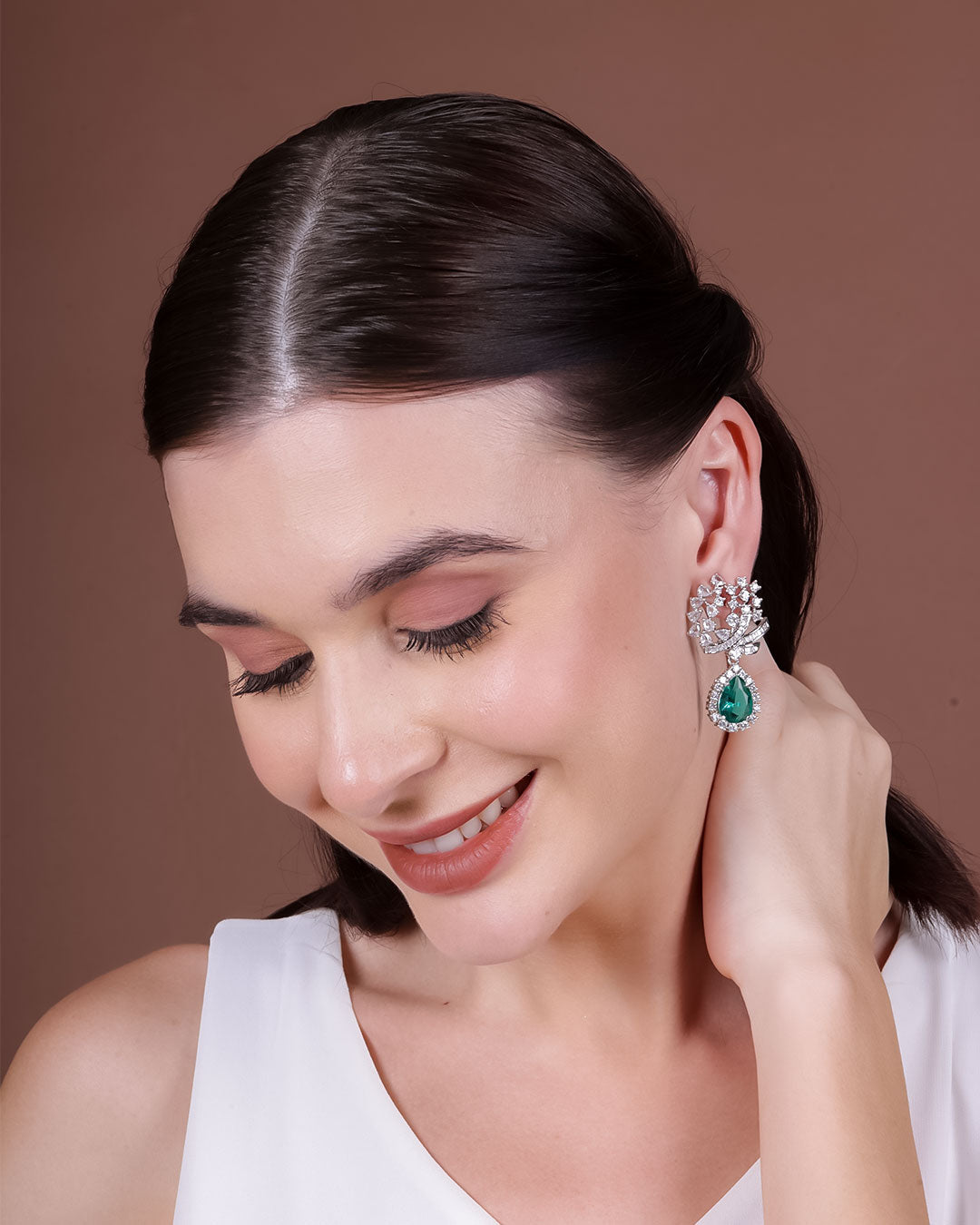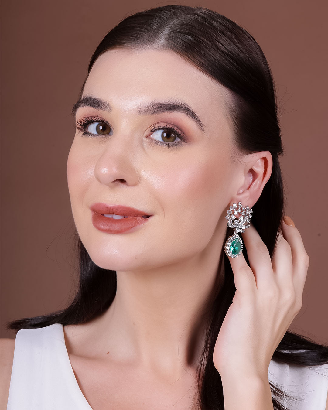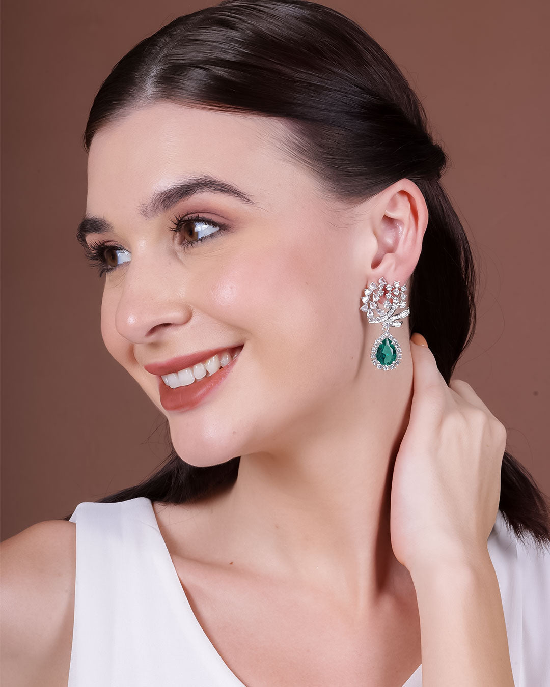 The combination of aqua green stones and zirconia creates a mesmerising play of light, adding a captivating dimension to these earrings. They effortlessly enhance any outfit, from casual ensembles to formal attire, making them a versatile accessory for all occasions.